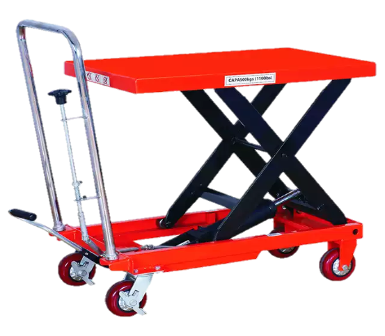 Easy action foot operated hydraulic lift for raising table top to desired level.